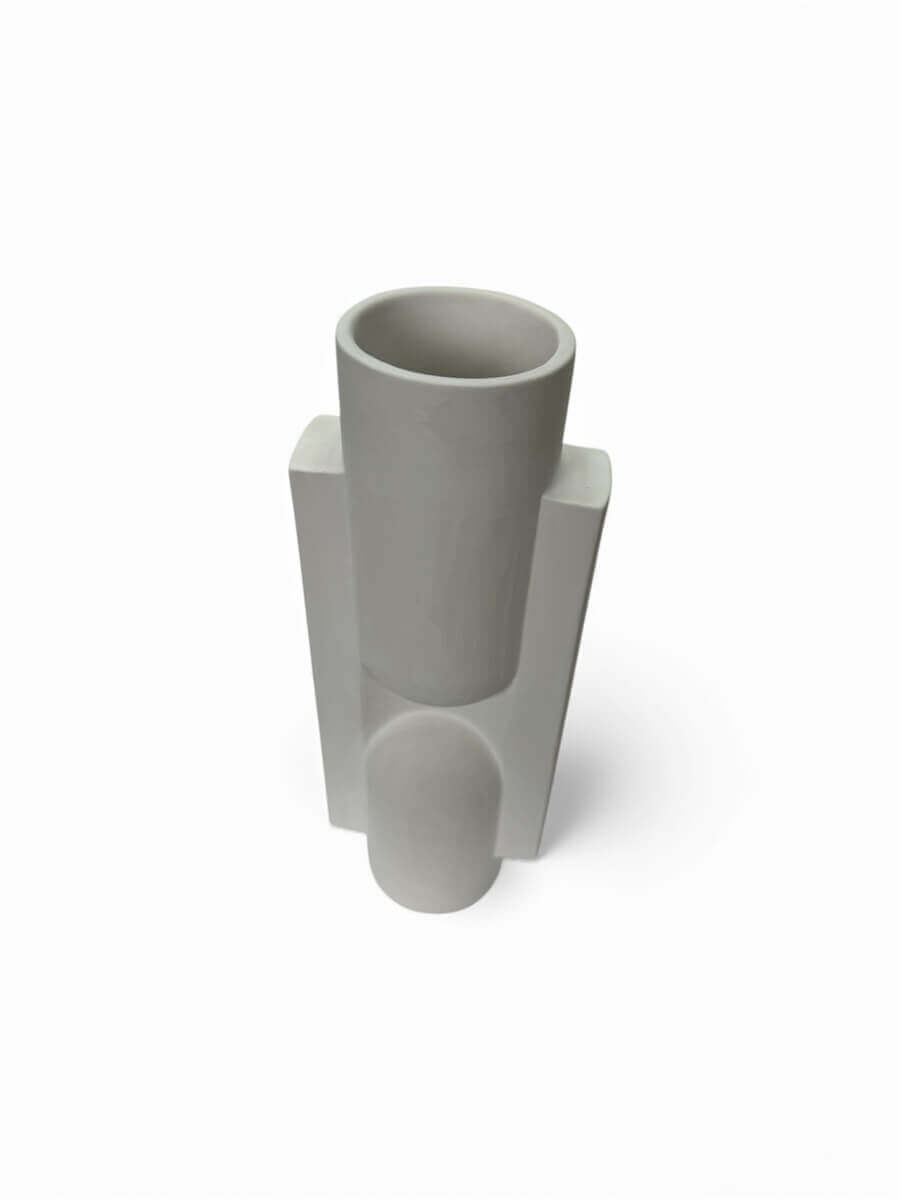 Une teinte blanche minérale, nette, lumineuse, qui donne à ce totem céramique une allure presque architecturale.