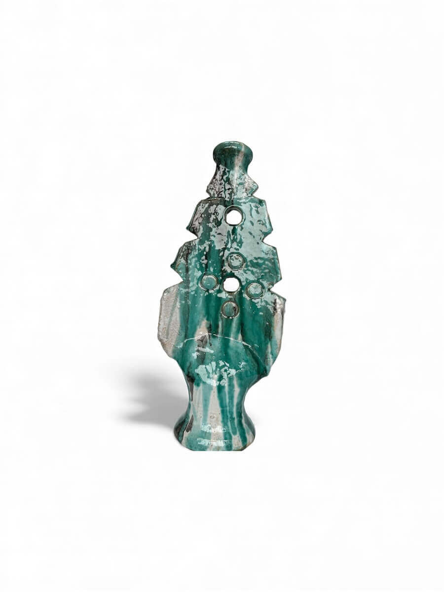 Artisanat traditionnel revisité-Bougeoir marocain traditionnel en terre cuite, bords découpés et forme losange. Revisité dans un bleu clair patiné, entre héritage et audace contemporaine.